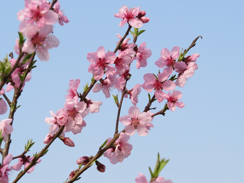 用途价值:花可以观赏,果可生食或制桃脯、罐头等,核仁也可以食用。桃的观赏及食用品种众多。桃、杏、梅花单生、无明显花梗,樱花类植物有明显花梗,数朵花着生于一起形成各类花序,可以与前者相区别。