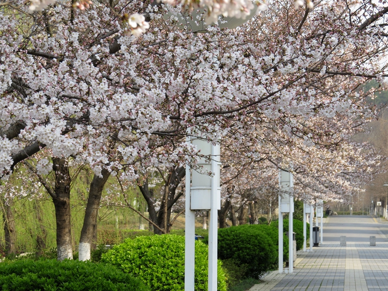 学生宿舍楼前的东京樱花也到了一年中最美的季节,许多人留恋于樱花树下拍照赏花,享受春天的恩赐。校园丁山自然植被众多,如同一座神秘的植物城堡,等待爱花之人的探寻……