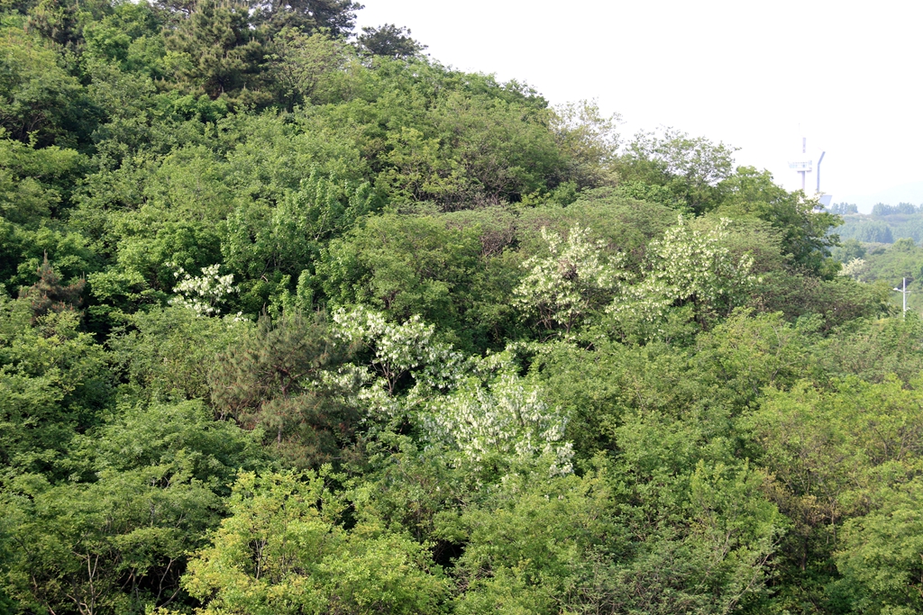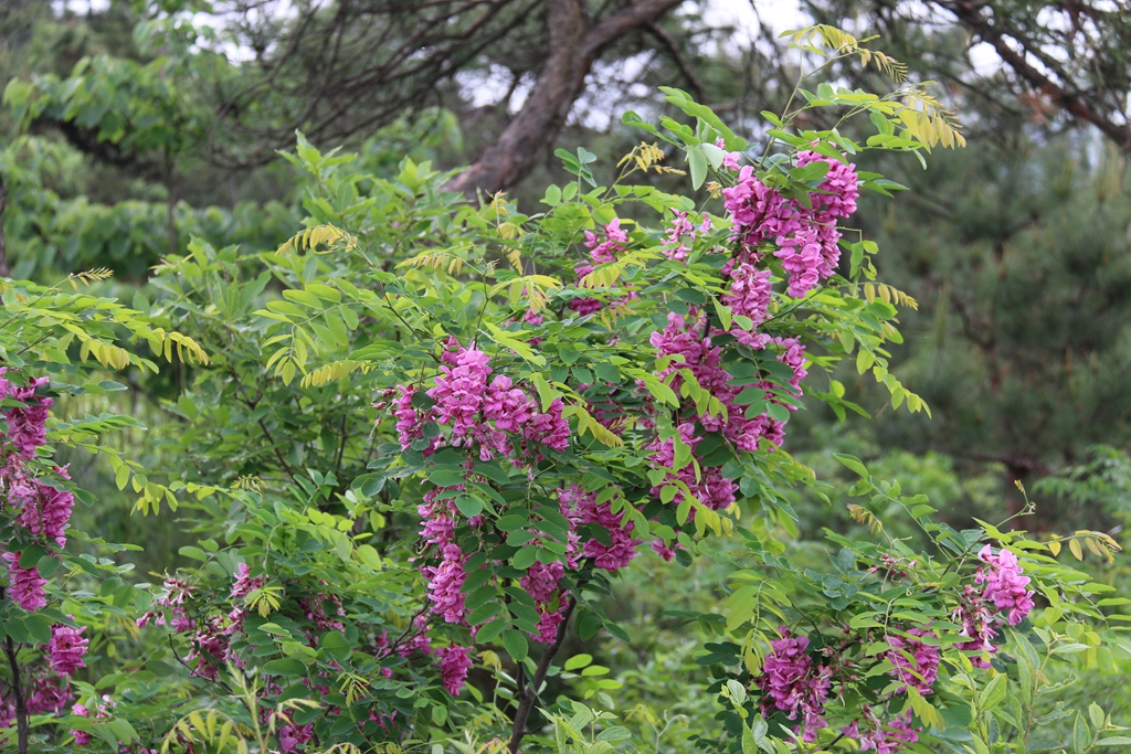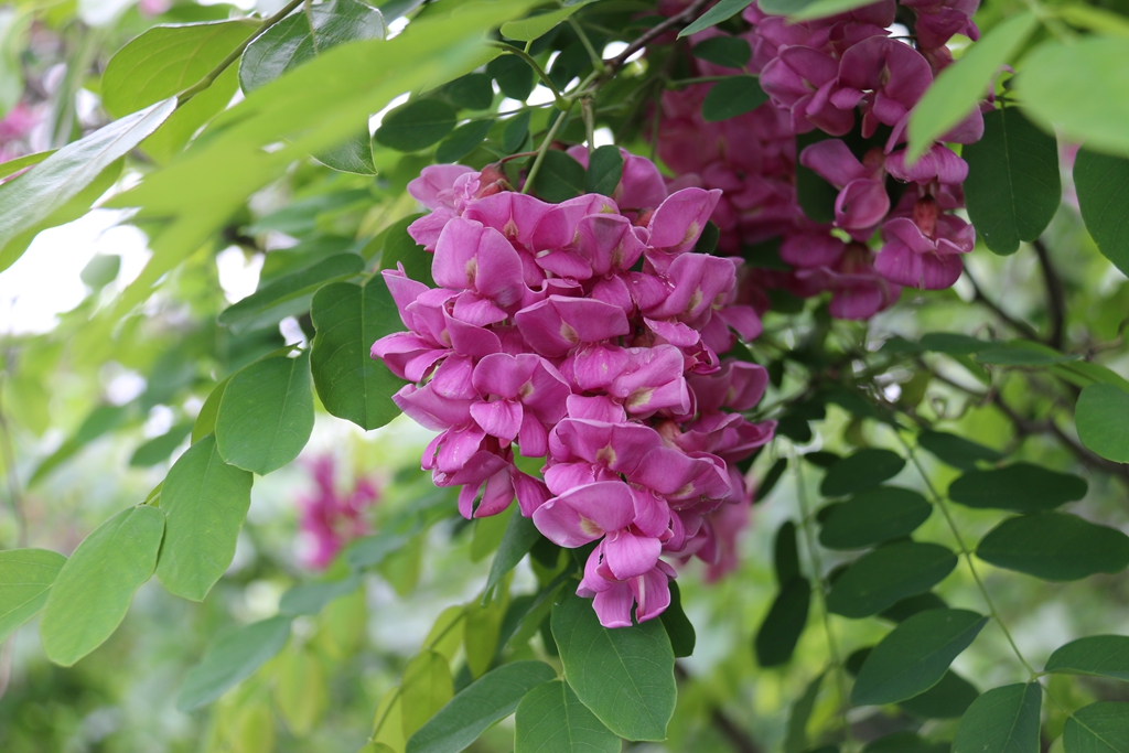 近缘种:红花刺槐,与刺槐相似,不同在于花瓣紫红色。丁山栽培。