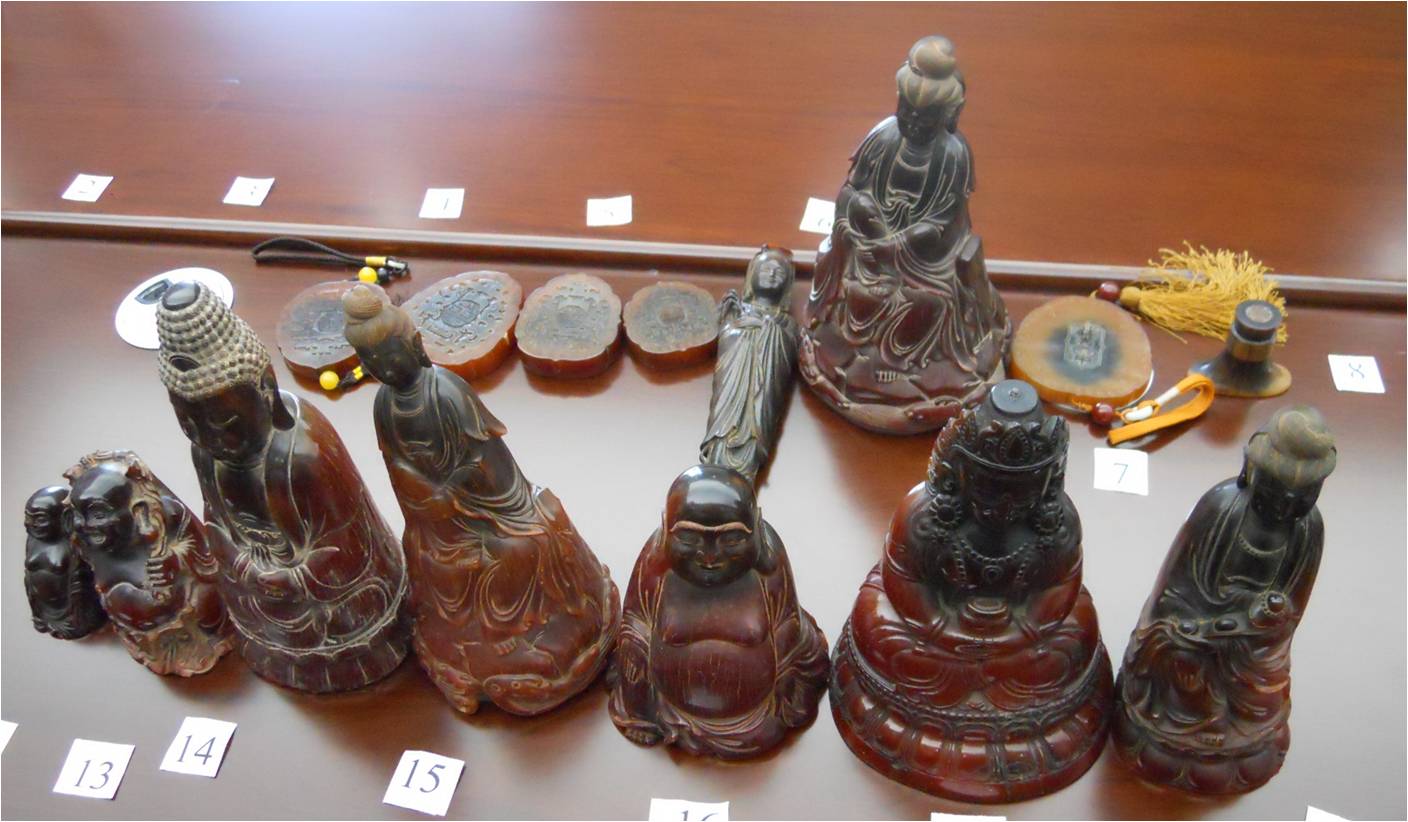 珍贵、濒危野生动物及制品因其稀有和濒危,其价值近年来不断飙升,其也作为赃物频繁出现在贪污贿赂案件中。珍贵、濒危野生动物的制品多以工艺品或标本等形式出现,因其不似金钱直接露骨容易为受贿者所接受,又因其濒危稀有和价值高昂行贿者也能达到行贿目的。以犀牛角为例,亚洲犀牛的角制品目前黑市的价值已达每克¥2000元,非洲犀牛的角制品其价值也已达到每克¥1500元。